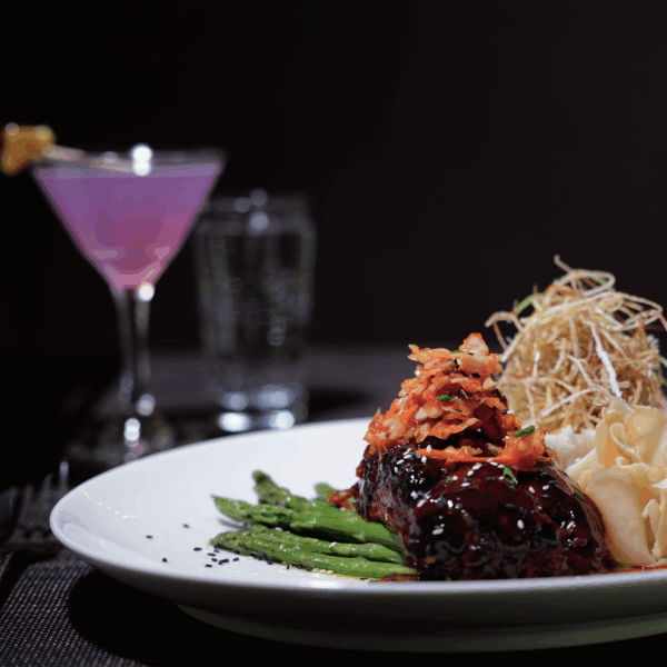 10oz Grilled Bistro Steak, served w/Asparagus, Roasted Crimini Mushroom Garlic Mashed Potatoes, and