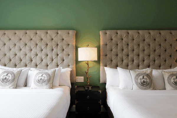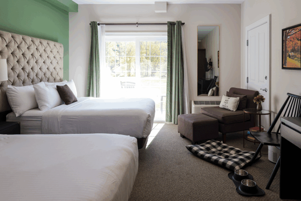 Unwind in our pet-friendly Pond Ridge Double Queen, featuring two plush queen beds, a private balcony overlooking the gardens and pond.